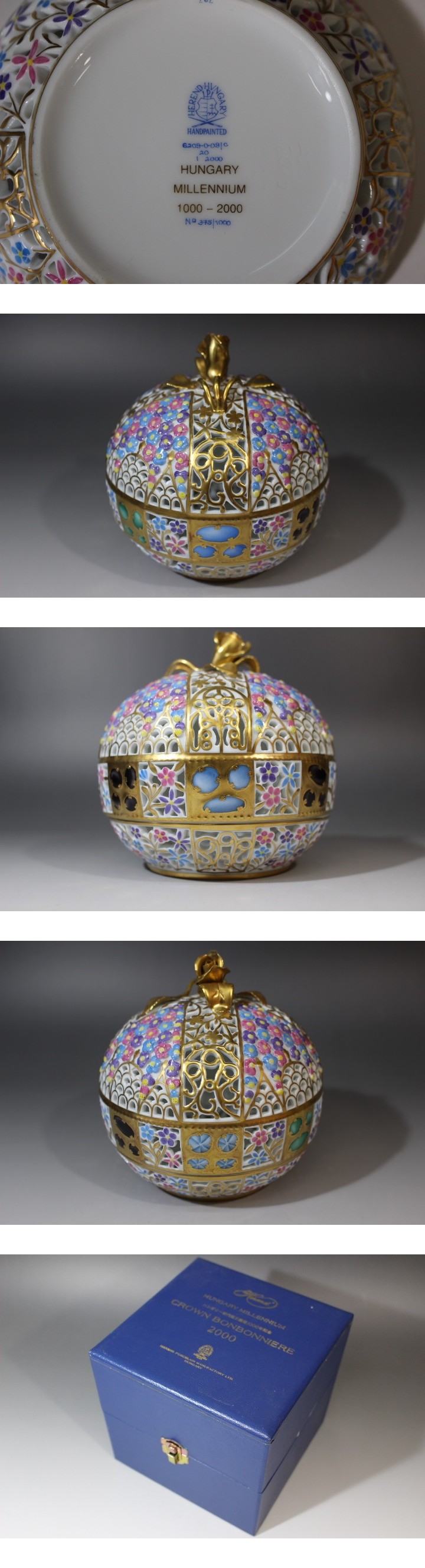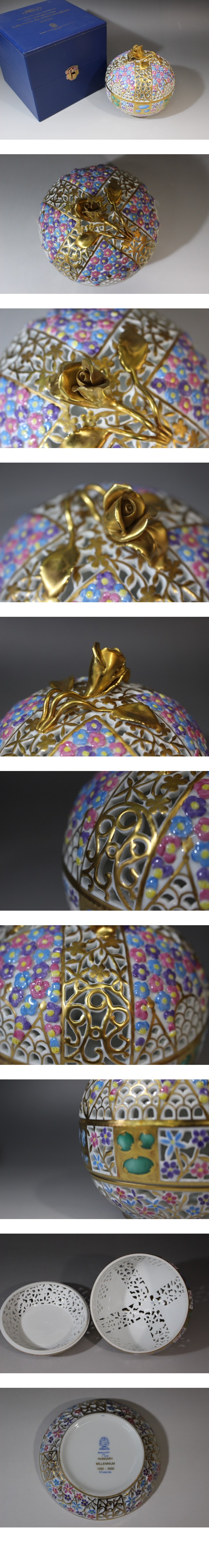 f615 技工名品 HEREND ヘレンド クラウン ボンボニエール 世界限定品 ハンガリー王室記念 透彫 金彩 蓋物 置物 オブジェ 收藏
