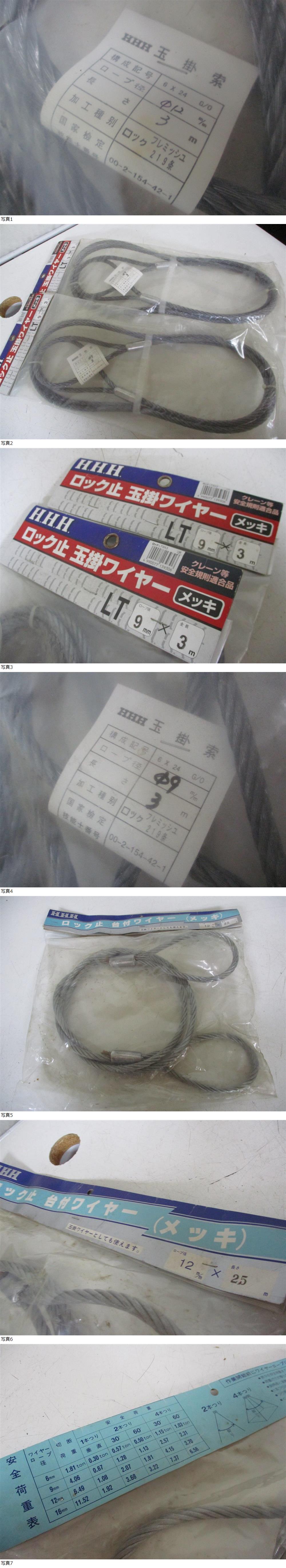 T-936【2-15】● 金物店在庫品 玉掛けワイヤー 各種サイズ 7点まとめて ワイヤースリング ユニック クレーン 吊り 建築 土木 11/11 收藏