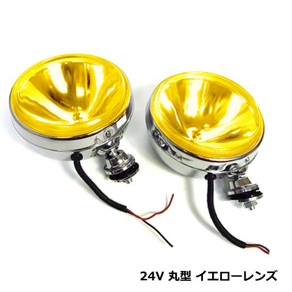 大型車 カバー付き 丸型 フォグ ランプ 24V イエロー 黄色 汎用 ハロゲン メッキ ライト クリア レンズ 丸目 2個 セット