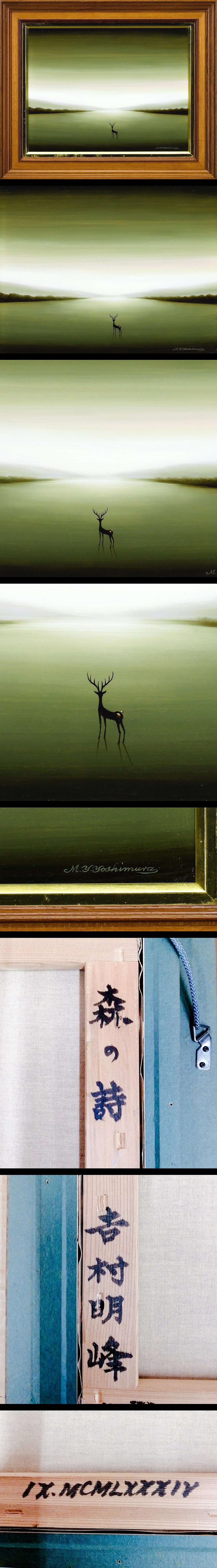【真作】【WISH】吉村明峰「森の詩」油彩 6号 ◆一頭の鹿が立つ静寂な水辺美情景 〇吉村美令由の父 個展伊勢丹他多数 #26022022 收藏