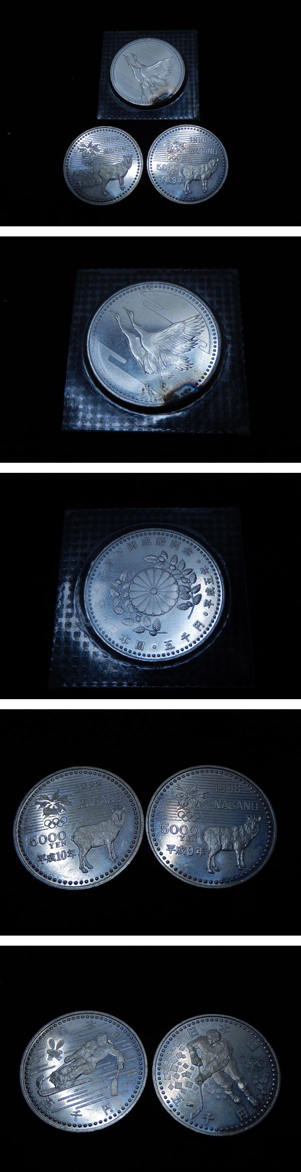 | ご覧いただきありがとうございます。 【商品名】 未使用 銀貨 記念硬貨 5000円銀貨 まとめて 3枚 【商品詳細】 5000円銀貨まとめて4枚になります。 【状態】中古 個人の主観になりますが、外観は皇太子殿下ご成婚記念硬貨のブリスターパックの一部破損しその部分だけ変色している箇所があるような状態だと思います。 あくまで個人の見解になりますので写真にてご判断下さい。 保管品の為、多少の小キズ・擦れ、写真に写りきらない汚れ等ある場合が ございます。ご理解頂ける方のみご参加ください。 【付属品】 写真のものがすべてになります。 【発送】 ゆうパック:60サイズ レターパックライト:430円 定形外:180円 (レターパック・定形外は簡易梱包) | ||