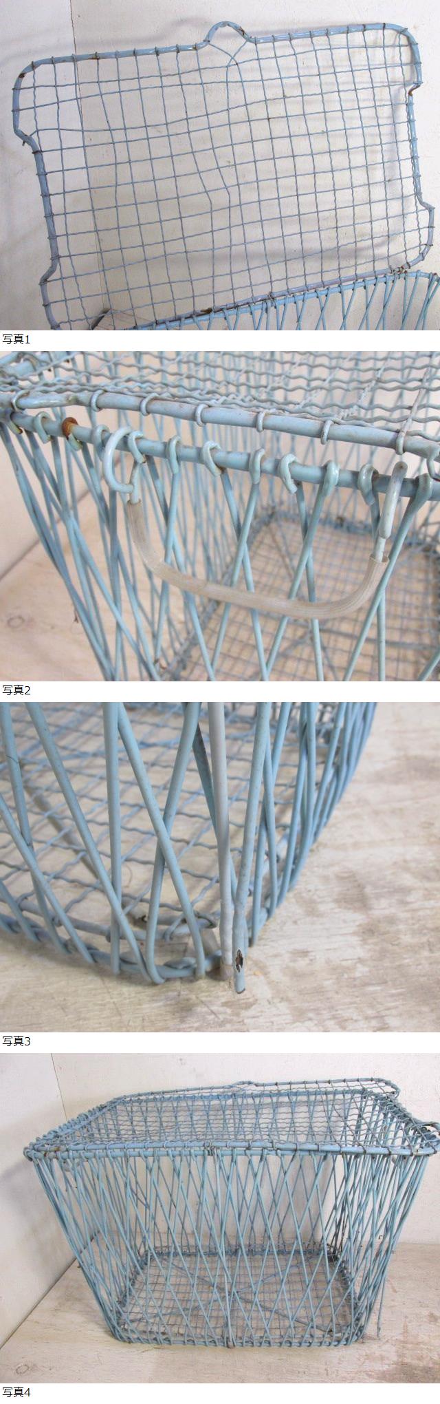 | 昭和レトロ 金属製 カゴ 水色 アンティークレトロ |