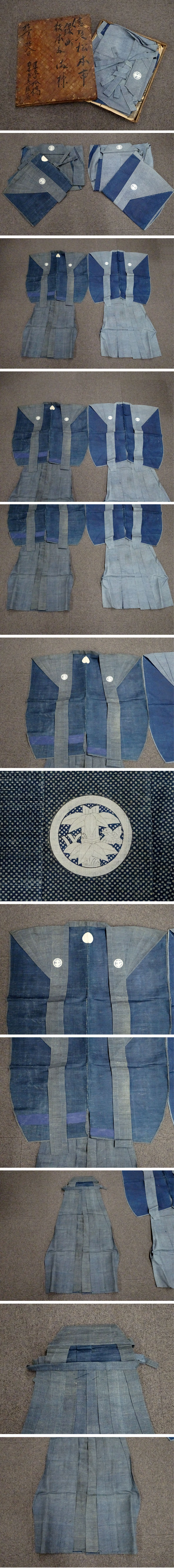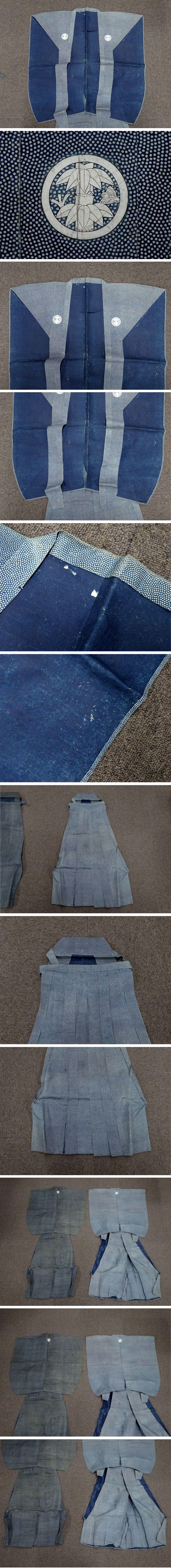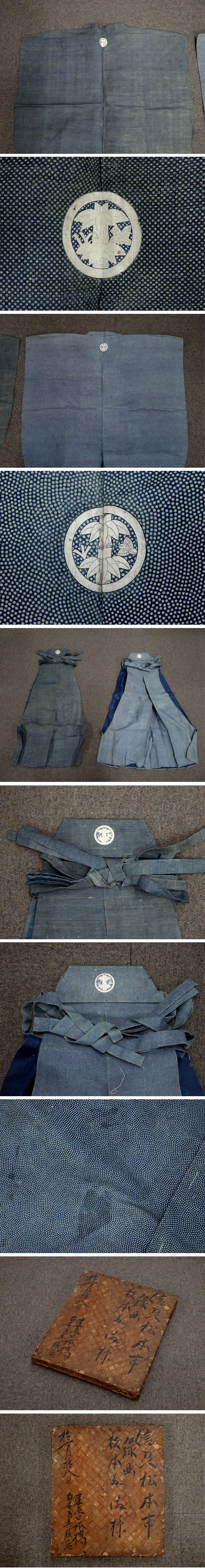 【敬逢】 江戸時代 信州松本 松本城三の丸緑町 名家伝来 竹に雀家紋 裃 上下 かみしも 2組 総柄 古裂古布半纏羽織刺子 收藏