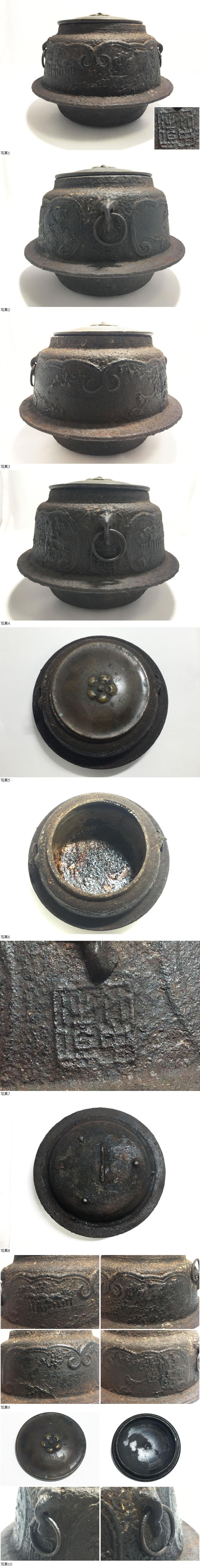銘あり 茶釜 炉釜 茶釜 風炉釜 約1.1kg 銅蓋 釜鐶 鐶付 南部鉄器 水漏無 油浮き有 茶道具 金属工芸 收藏