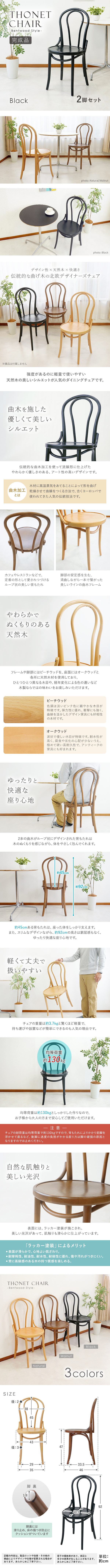 送料無料 トーネットチェア 2脚セット ブラック ビーチ材 カントリーチェア トーネット ベントウッド ダイニングチェア カフェ 收藏