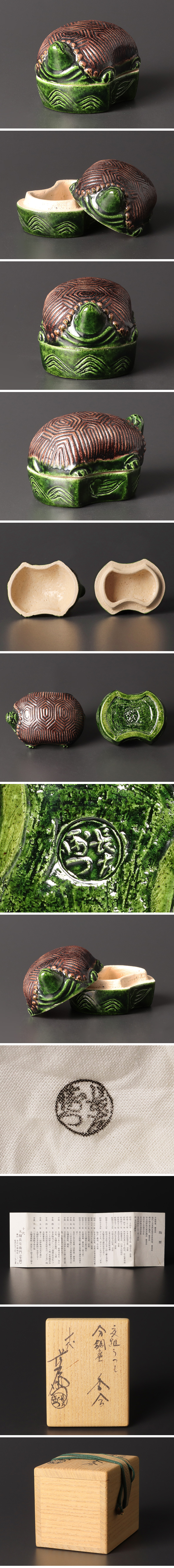 | 【古美味】十代大樋長左衛門 交趾うつし 分銅亀香合 茶道具 保証品 |