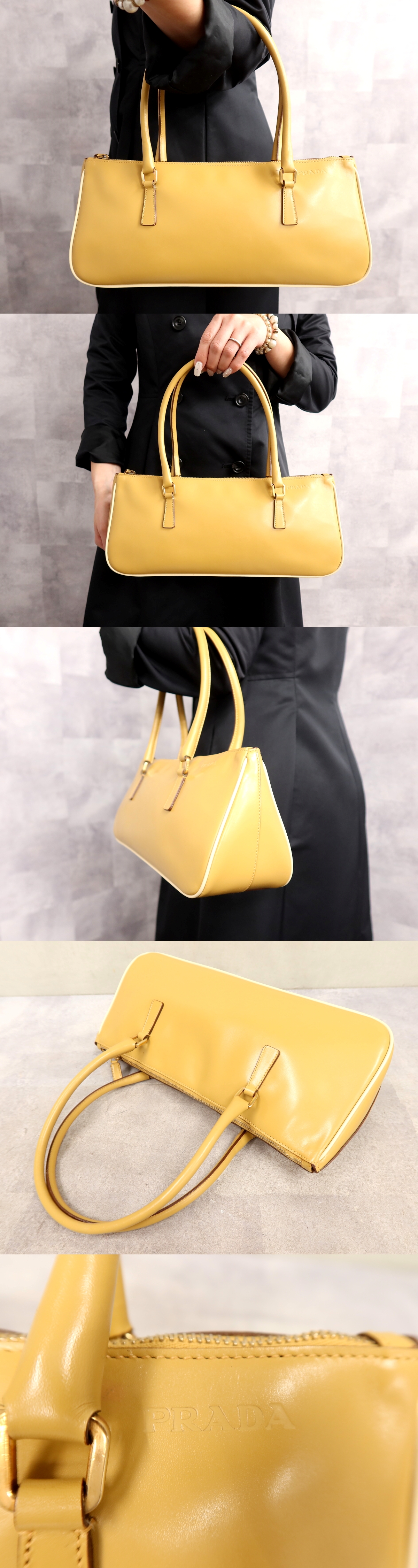 ●超美品●PRADA プラダ●ロゴ型押し●カーフ レザー 本革●トート ハンド バッグ●キャメル●ゴールド金具●イタリア製●腕掛け●Js65964 收藏