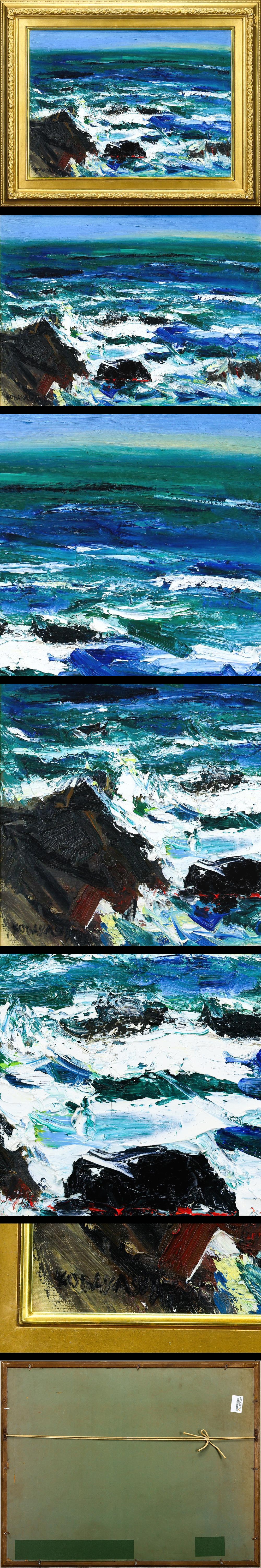 【WISH】サイン有:KOBAYASHI 油彩 20号 大作 岩礁に激しく砕ける白波の海 #26022855 收藏