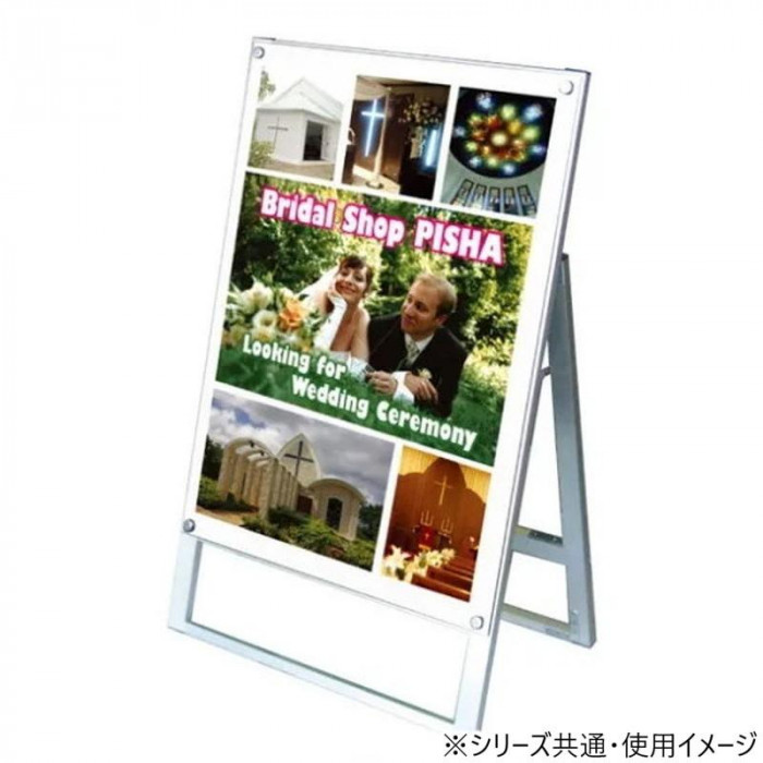 | アクリルと化粧ビスでポスターを挟み込んで、展示することができます。高級感あるスタンド看板です。 |