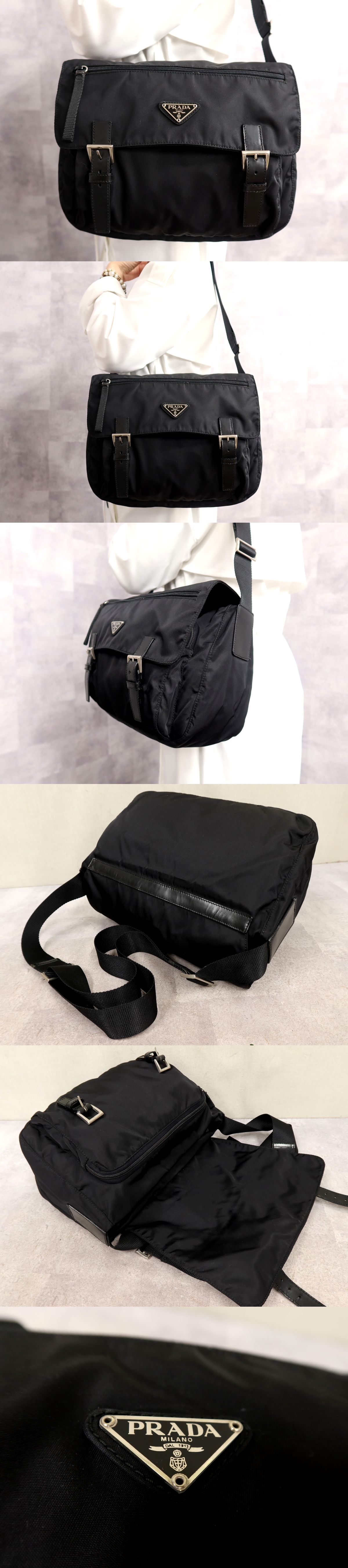 ●超美品●PRADA プラダ●ポコノ ナイロン カーフ レザー 本革●メッセンジャー ショルダー バッグ●黒●シルバー金具●B5 かばん●Js66586 收藏
