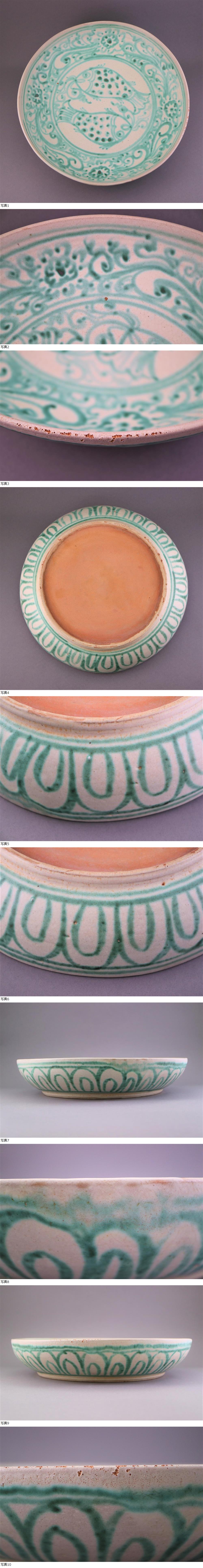 | 【GTS】★ミャンマー・白釉緑彩魚草花文大皿15~16世紀 |