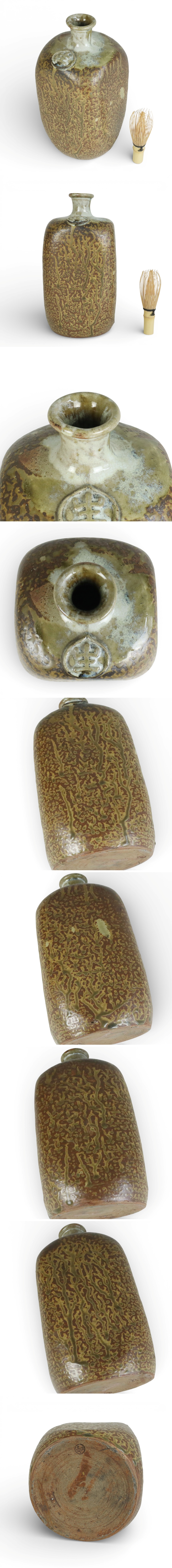 江戸後期 高取焼 虫明焼 生玉堂 保命酒徳利 鞆徳利 備後 鞆の浦 酒器 陶磁器 骨董品 美術品 1490wgyH 收藏