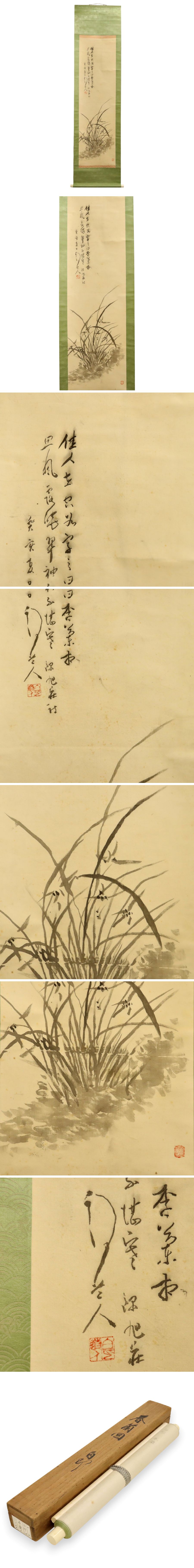 真作保証 津田白印 「春蘭図」 絹本 箱 備後 掛軸 書画 骨董品 美術品 2032uczN 收藏