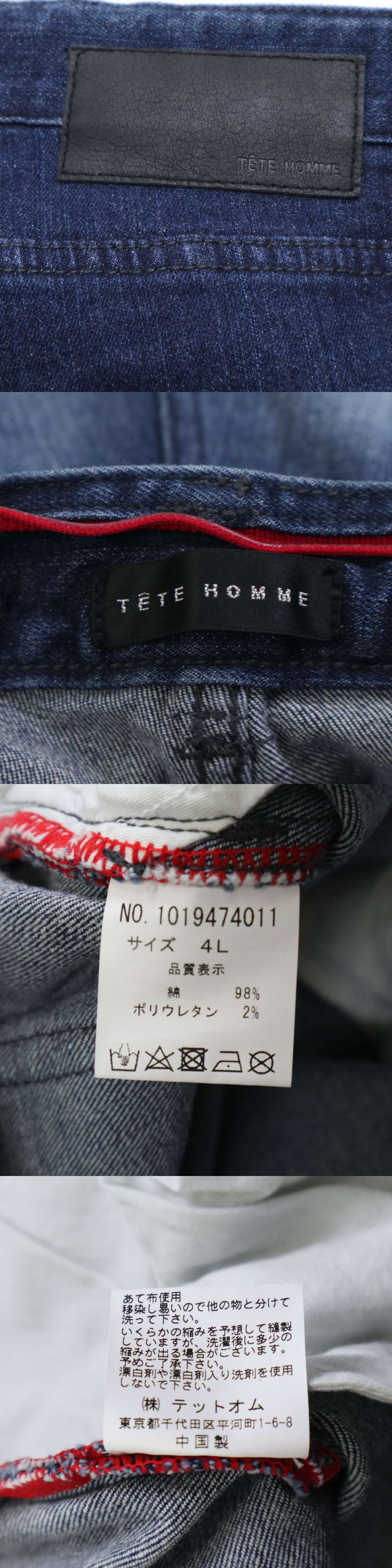 TETE HOMME テットオム 通年 USED加工★ ストレッチ テーパード デニム パンツ ジーンズ Sz.4L メンズ 大きいサイズ 收藏