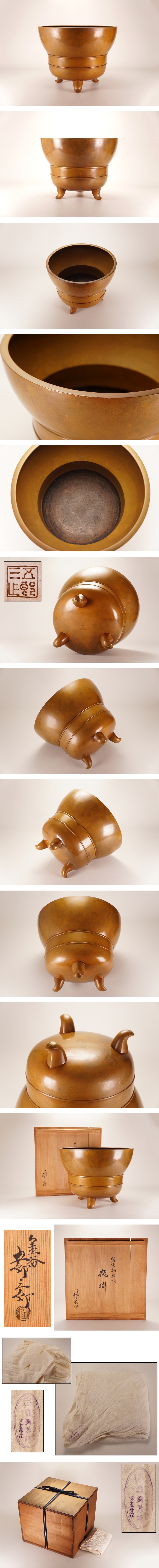 【茶の器特集】NS33◆金谷 五郎三郎 造 黄唐銅 鼎式 瓶掛 在銘 共箱◆煎茶道具 金工 うぶ 買取品 蔵出し 売り切り 古美術 收藏