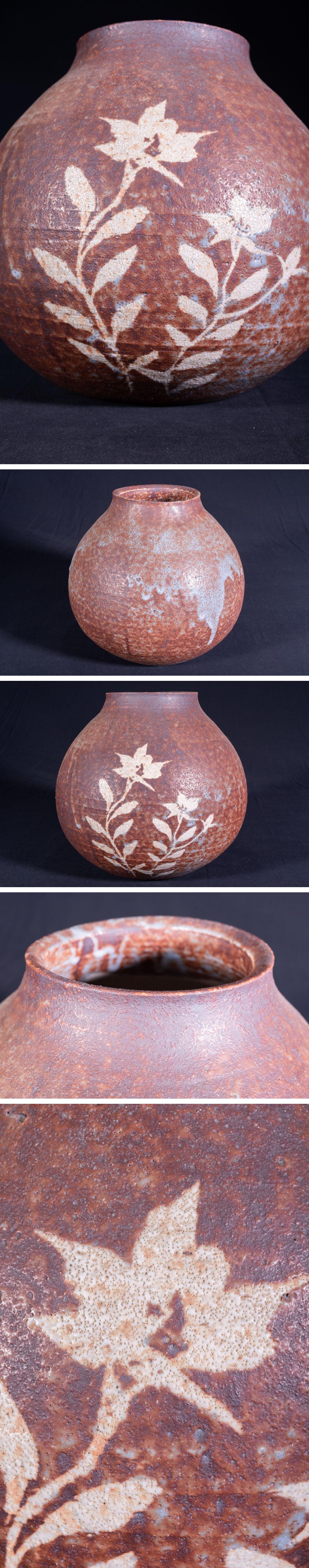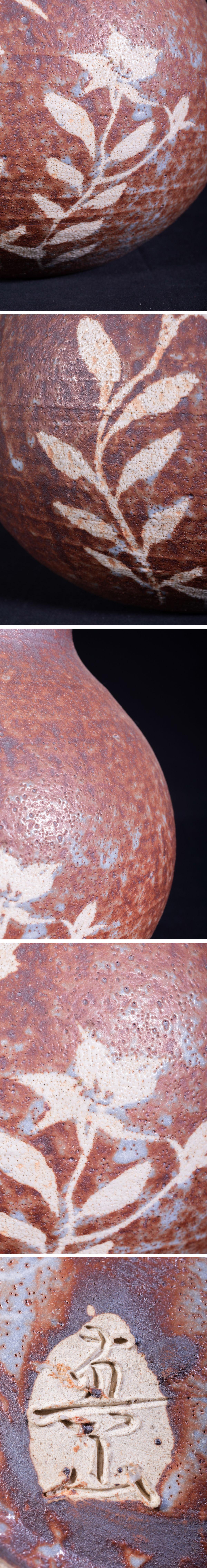 【珍品堂】1円から 志野焼 真山 作 美濃焼 在銘 花瓶 飾壺 時代物 骨董品 古美術 幅30 cm M-A39T-HM3 收藏