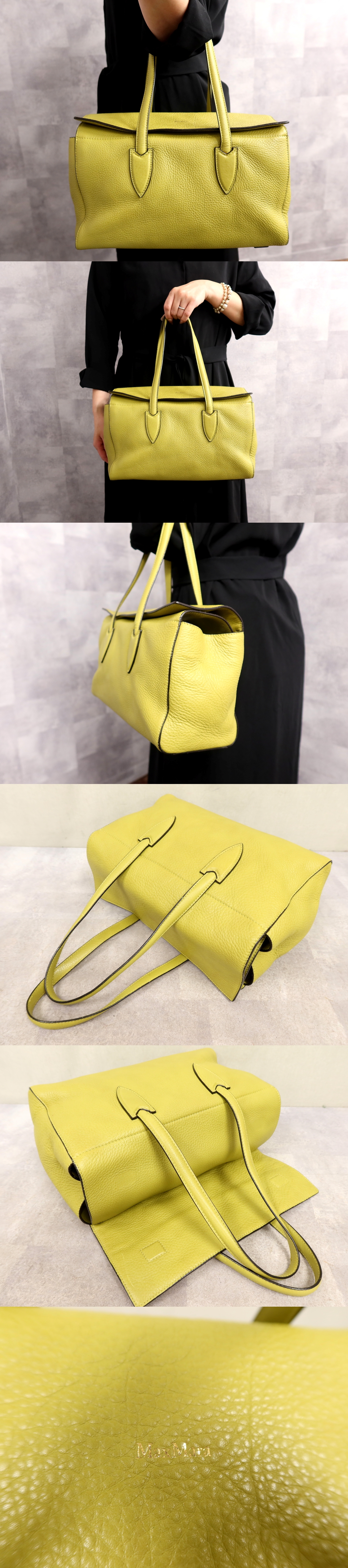 ●超美品●Max Mara マックスマーラ●カーフ レザー 本革●ハンド バッグ●ライムグリーン●ゴールド金具●B5 収納●書類 かばん●Js67382 收藏