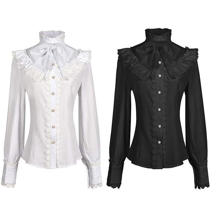 ☆ ブラック ☆ 2XLサイズ ☆ ブラウス kblouse29 ブラウス レース レディース シャツ コスプレ フリル 長袖 フォーマル ハイネック リボン 收藏