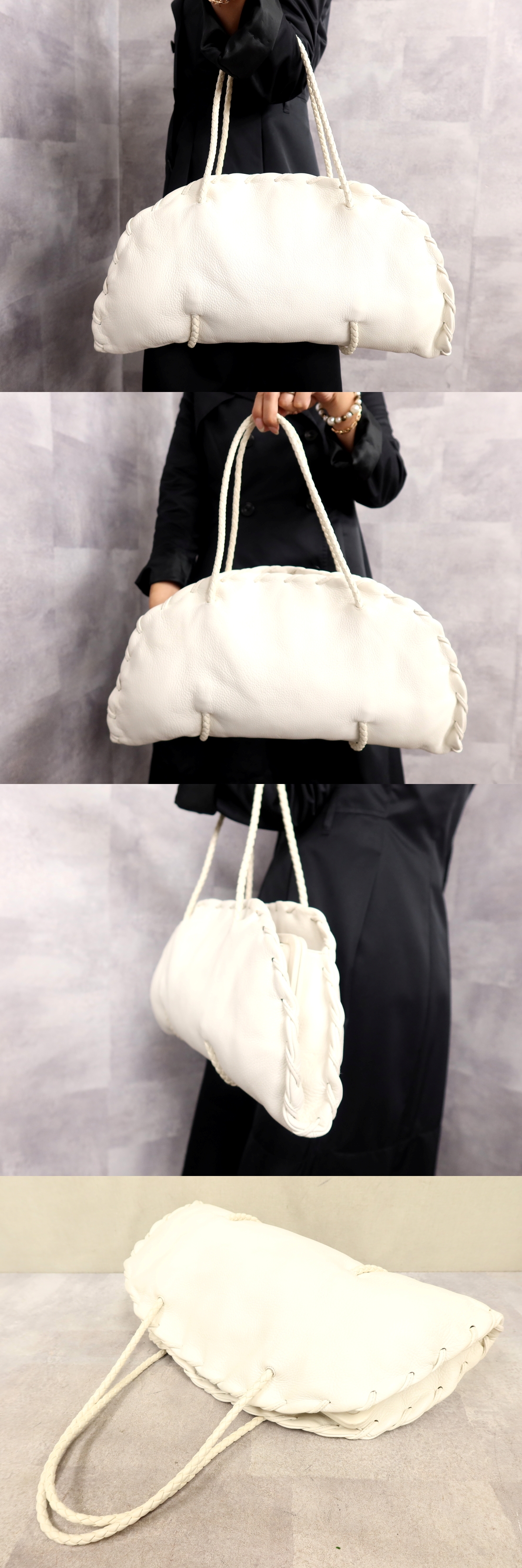 超美品●BOTTEGA VENETA ボッテガ ヴェネタ●イントレチャート●ディアスキン レザー 本革●ハンド バッグ●オフホワイト●G金具●Js62371 收藏