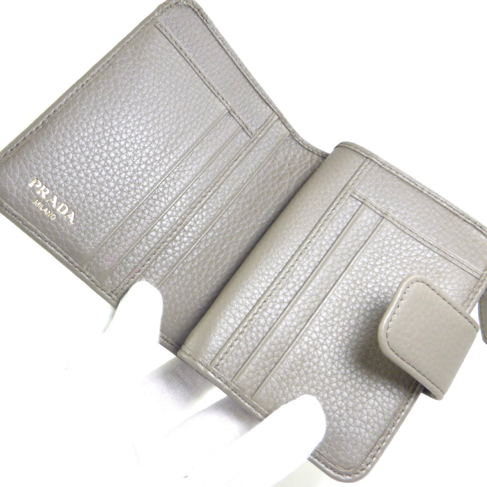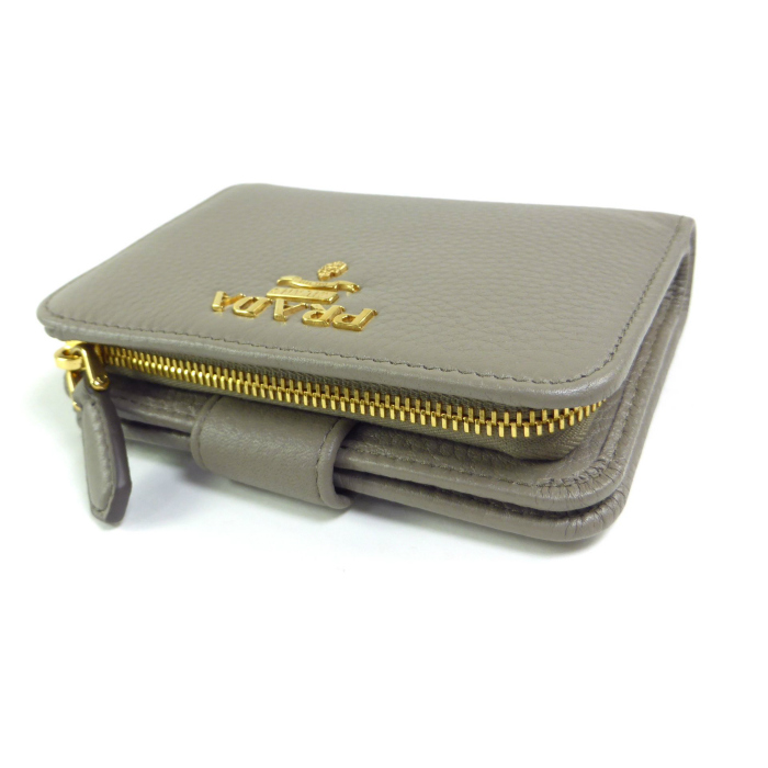 プラダ (PRADA) ヴィッテログレイン レタリングロゴ コンパクト 二つ折り 財布 1ML018 ARGILLA(新品) 收藏