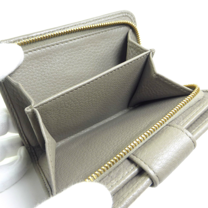 | 柔らかな質感が特徴のヴィッテロダイノレザーを使用した、高級感あふれるプラダの二つ折り財布。 正面にメタルのレタリングロゴをあしらった小銭入れを配置し、背面にはカードホルダーなどをベルト開閉で折り畳む機能的なコンパクト財布です。 小さなかばんにも無理なく収まるサイズで、内側に複数のポケットが用意され小分けに整理が可能なデザイン。 洗練されたフォルムとデザイン性で、世代を選ばず永くお使いいただけるおススメの折り財布です。 |