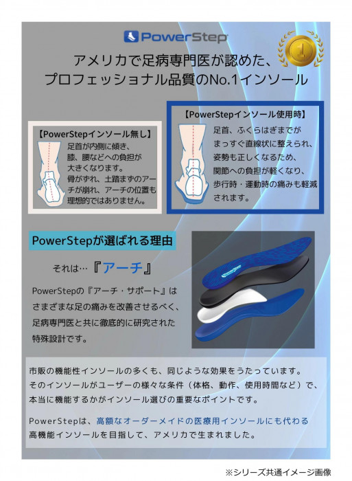 | 足底筋膜炎や中足骨痛などの慢性的な足の痛み、疲れを軽減させるインソールです。立体的な土踏まずのクッションがアーチにフィットし、足の裏をしっかり支え、かつ、足全体にフィットし、一日中快適に過ごすことができます。 |