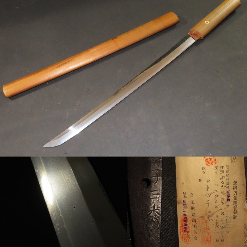 保存鑑定書 刀 筑紫了戒 拵 白鞘 室町 88×刀身61.6×反1.1×元幅2.9×元重0.5x先重0.4cm 1.41㎏ 收藏