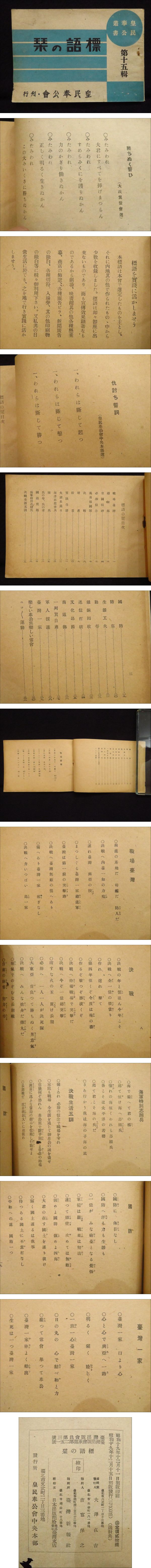 戦前 台北発行【皇民奉公叢書第15輯◆標語の栞】台湾皇民化(同化)資料 昭和19年 臺灣 教育 検)古写真古地図中国朝鮮満州鳥瞰図 收藏