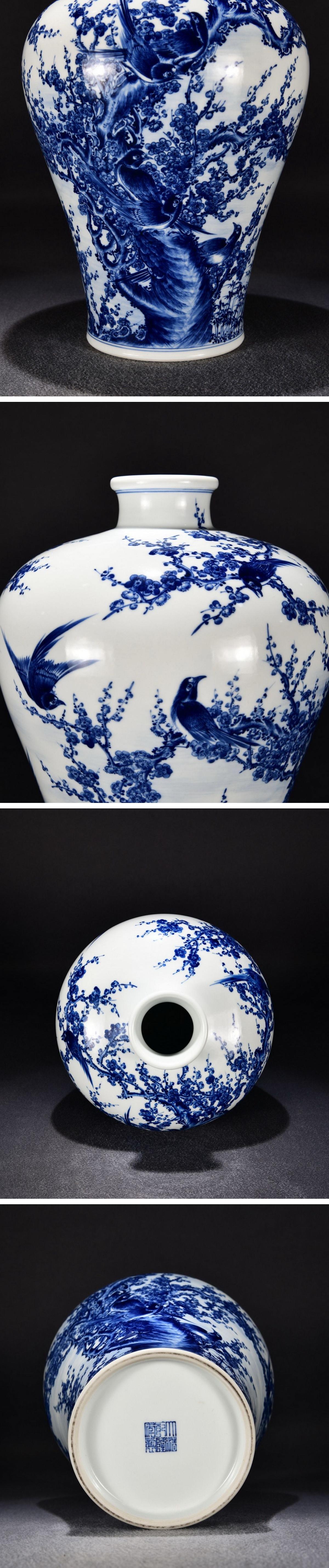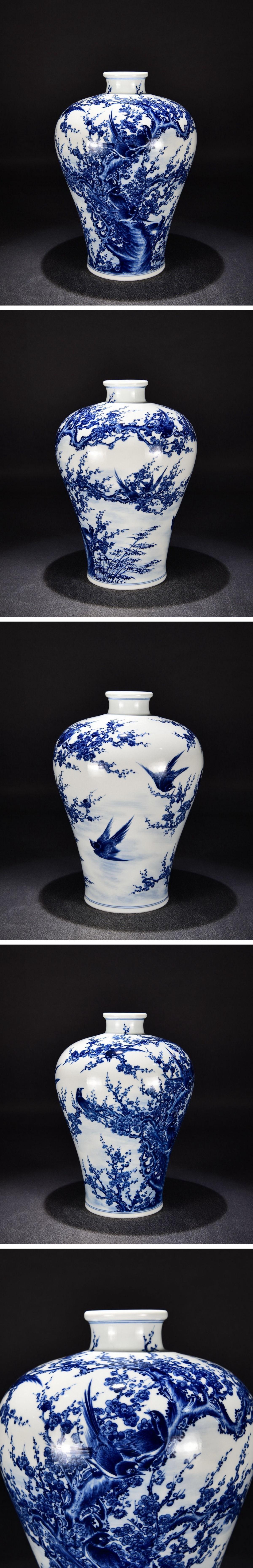 【清】関西某オークション購入 中国・清時代 大清乾隆年製 青花花鳥図梅瓶 極細工 古置物 古擺件 中国古美術7L12-GQ12 收藏