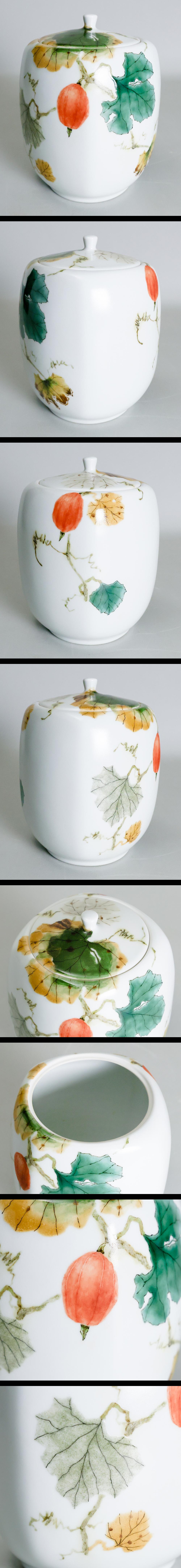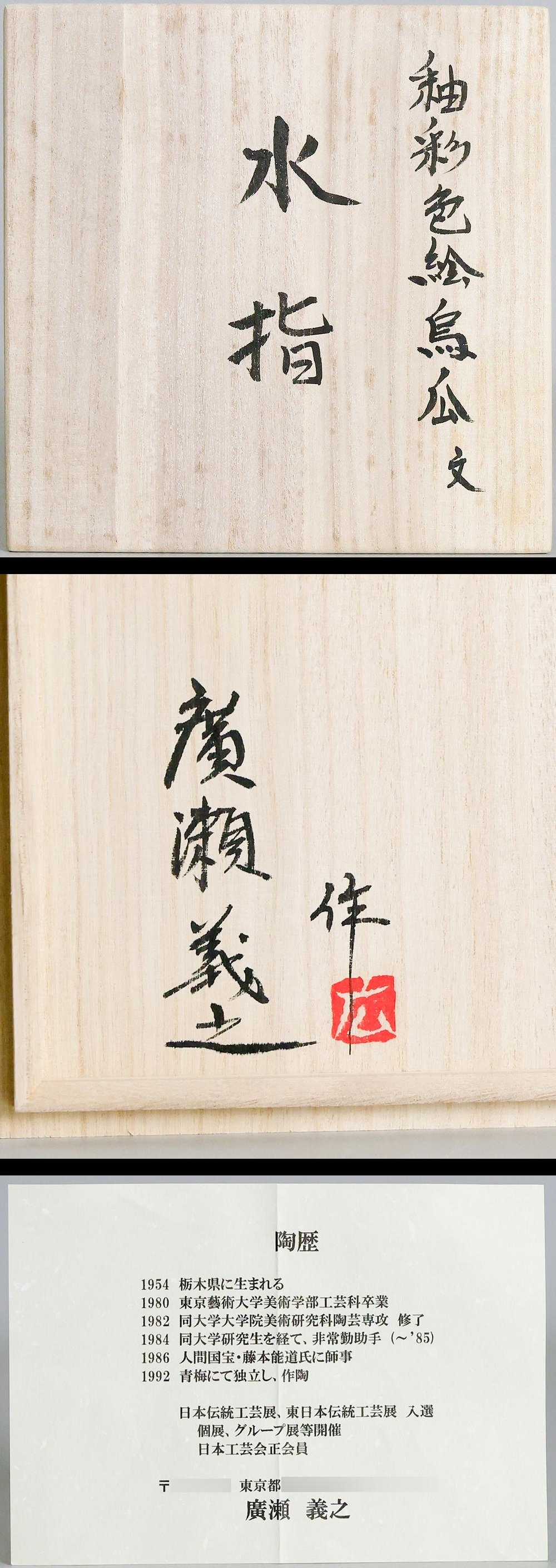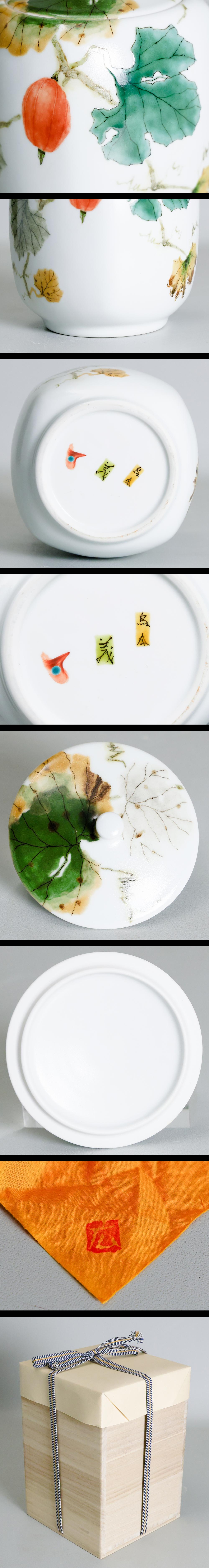 【真作】【WISH】廣瀬義之(広瀬義之)「釉彩色絵烏瓜文 水指」色絵磁器 共箱 高さ21cm 〇師:藤本能道 #25116013 收藏