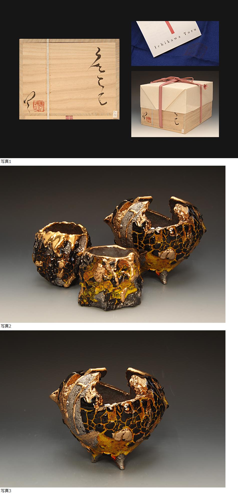 星庵厳選名品企画 市川透作 金銀彩酒器三点揃 出展作共箱