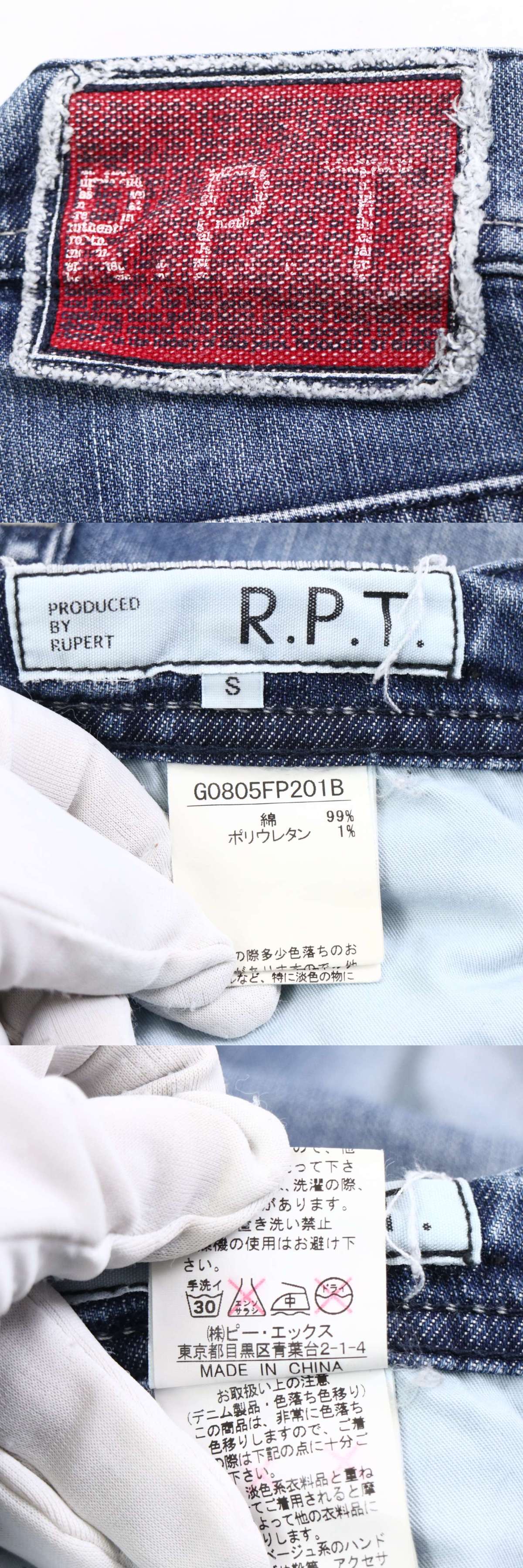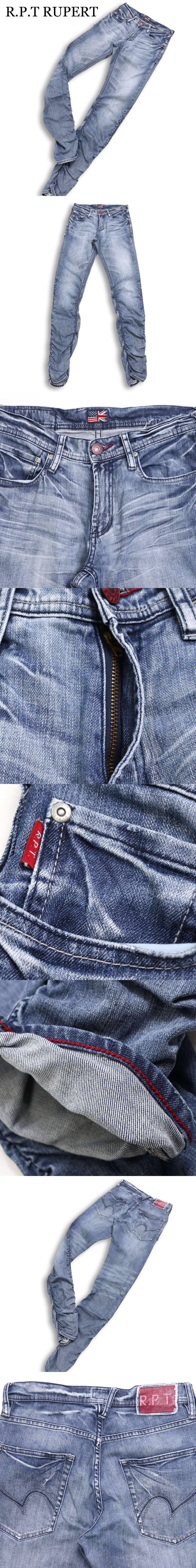 R.P.T RUPERT ルパート 通年 USED加工 シャーリング★ ストレッチ スキニー デニム パンツ ジーンズ Sz.S メンズ 收藏