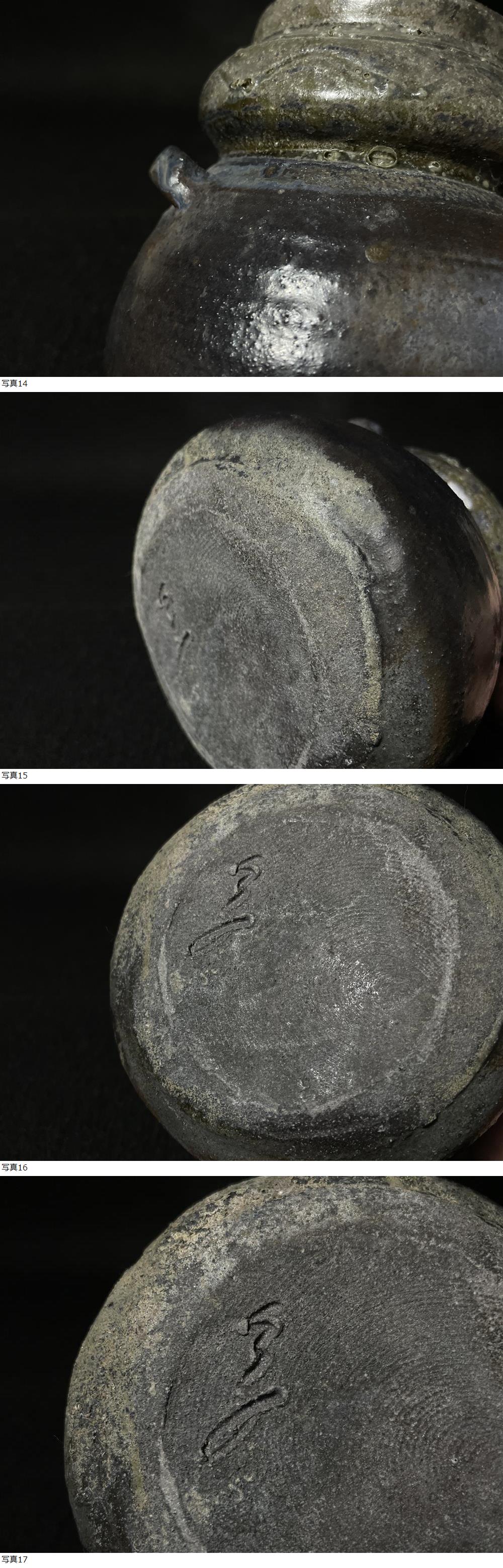 | 古備前 二耳蹲花入 花器 花瓶 蹲 花入 在銘 陶印 備前焼 高さ約11.5cm |