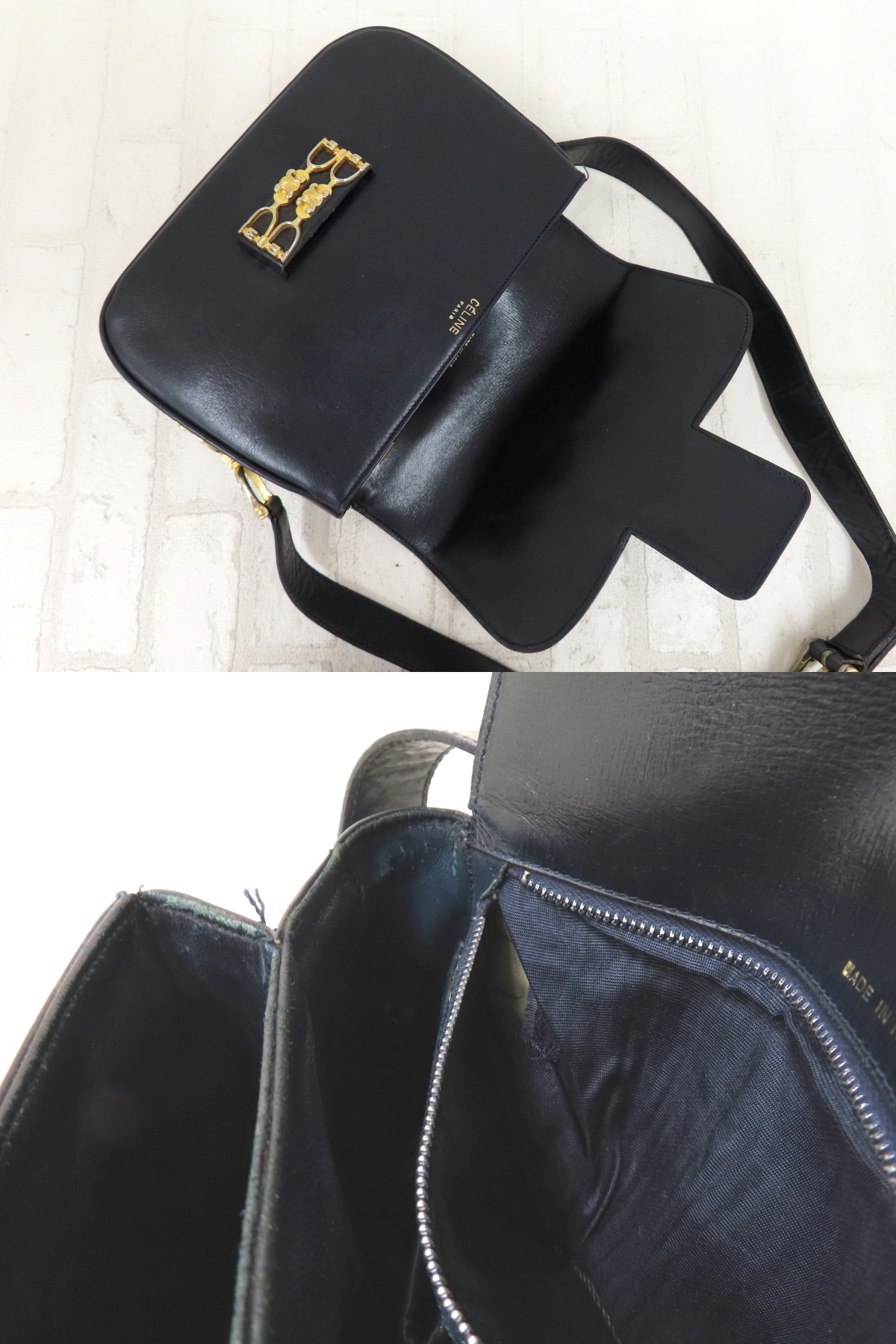 ◆美品◆CELINE セリーヌ◆カーフ レザー 本革◆ショルダー バッグ◆ネイビー ゴールド金具◆ヴィンテージ◆フラップ◆肩掛け◆A15147 收藏