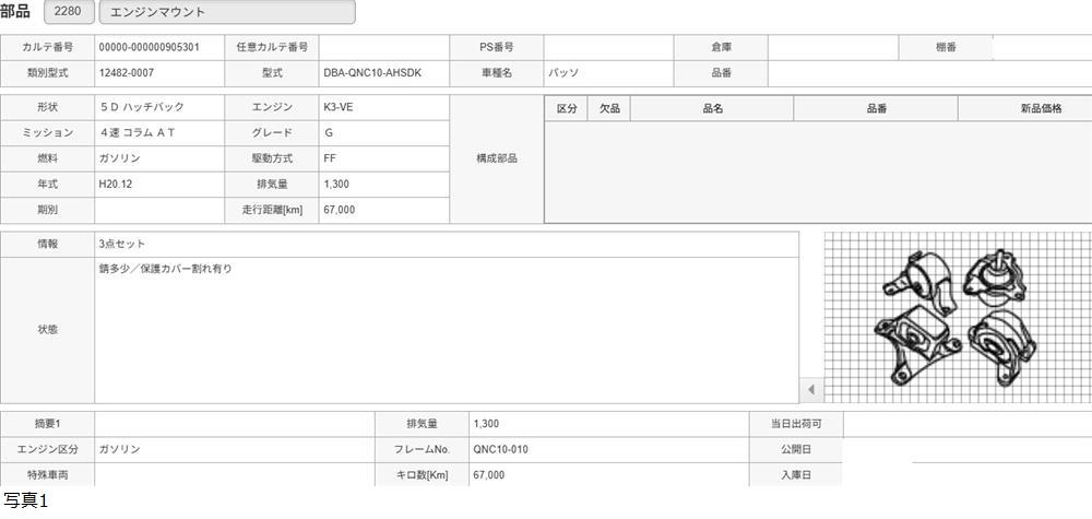 H20年 QNC10 パッソ エンジンマウント 3点セット /送料 ミニ/905301 收藏