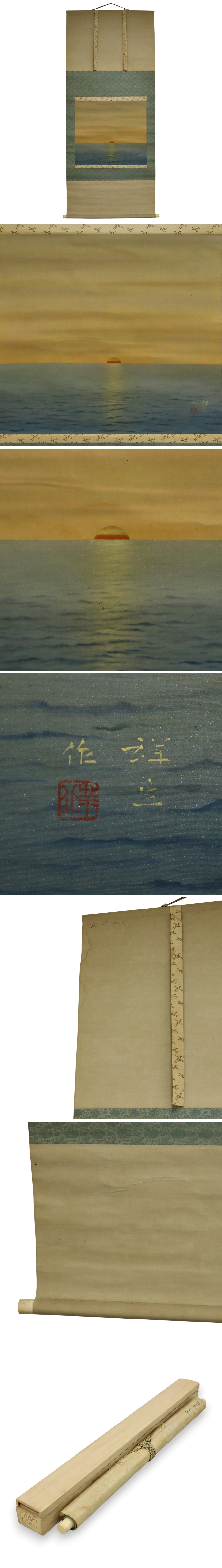 真作保証 福山絵師 大島祥丘「日の出図」絹本 箱 備後 掛軸 書画 骨董品 美術品 2846kczN 收藏
