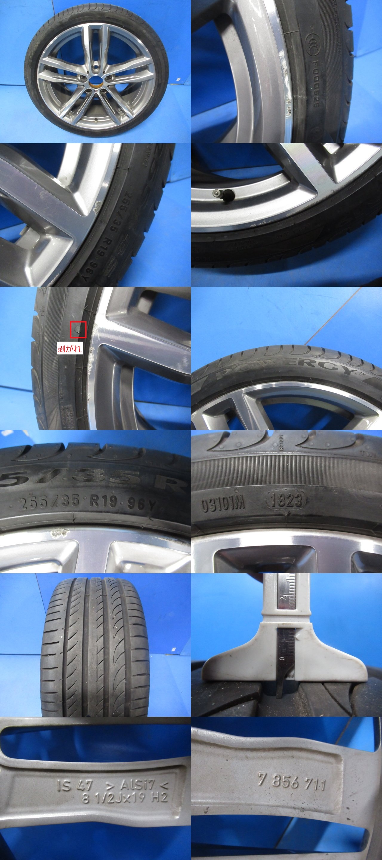 【即決有】 BMW 3シリーズ F30 Mスポーツ 純正 19インチ 19X8.5J +47 5穴 PCD120 255/35R19 96Y タイヤ ホイール 1本 (g016098) 收藏