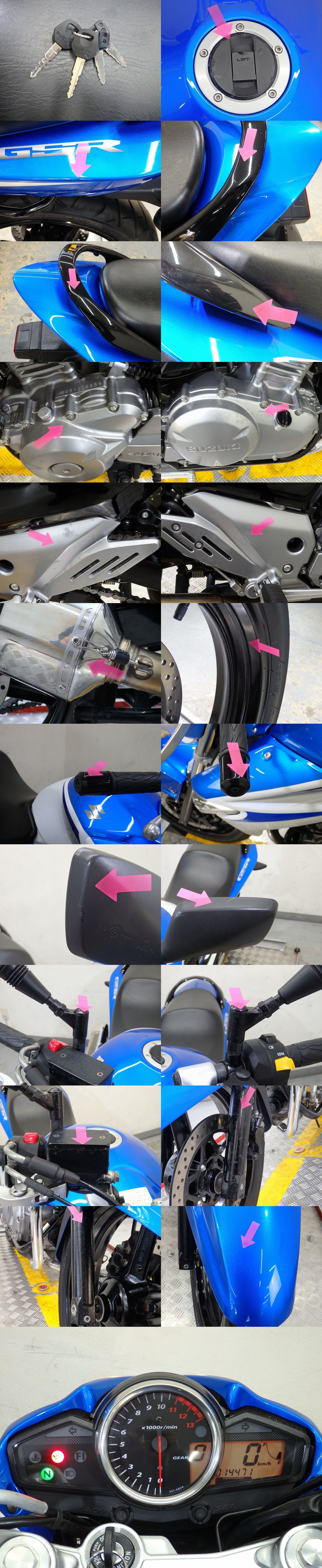 | 車両情報 | ■メーカー : 【スズキ(SUZUKI)】 ■車 名 : 【GSR250】 ■排気量 : 【250cc】 ■走行距離 : 【14,471km】 ■車体番号 : 【LC6GJ55D00110****】 ■車検(自賠責保険) : 【なし】 ■年式(または初年度登録) : 【平成27年】 ■車両状態 エンジン セルにて始動確認済み 保安部品 ライト、ウインカー・テールランプ等 電装保安部品は正常作動いたします。 外装 フロントフェンダー、バーエンド、ミラー、 テールカウル、マフラーサイレンサーなど 側面パーツへ多数小傷があります。 フルードキャップ、エンジンカバー、ホイールリム、 フォークアウターなど金属製パーツへ 腐食、サビ箇所がございます。 ※画像でわかりにくい点や気になる点ありましたら、 現車確認またはご質問ください。 ■その他 ご不明な点などありましたら、 車両の前でご説明も可能です。 お電話からもお気軽にお問い合わせください。 ![]() ![]() |