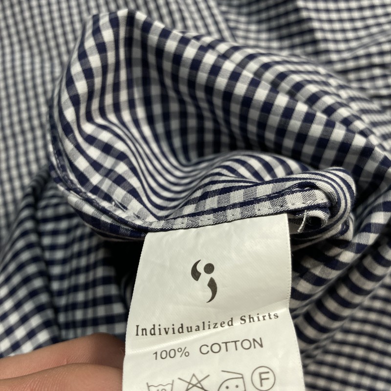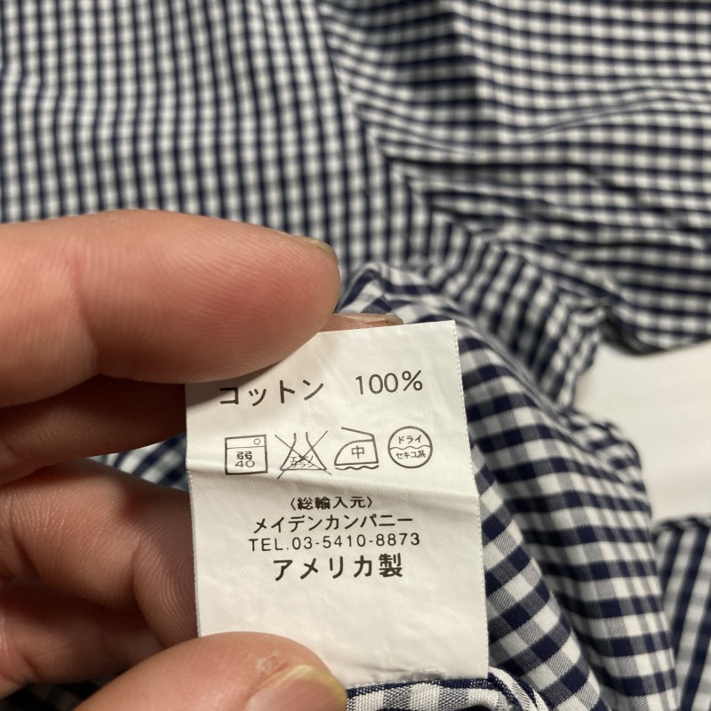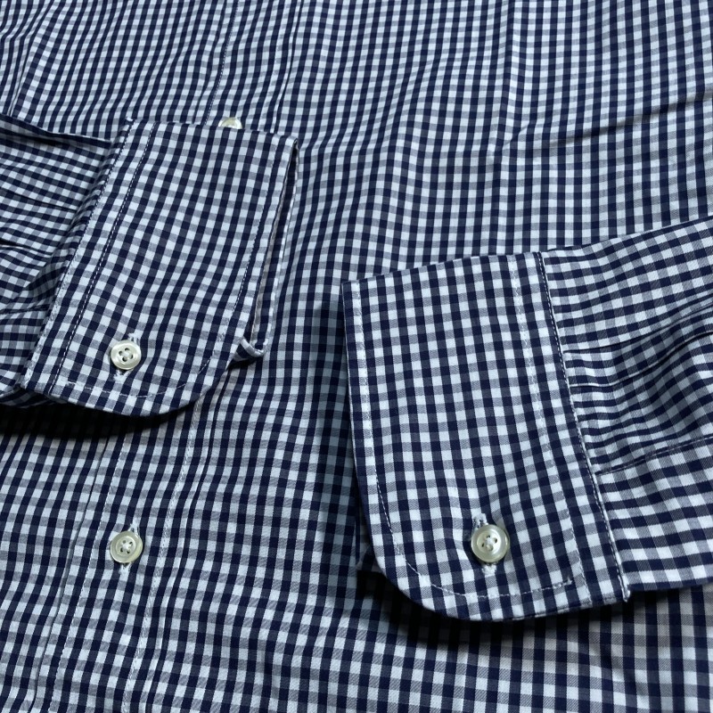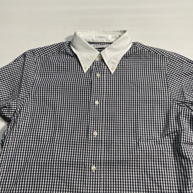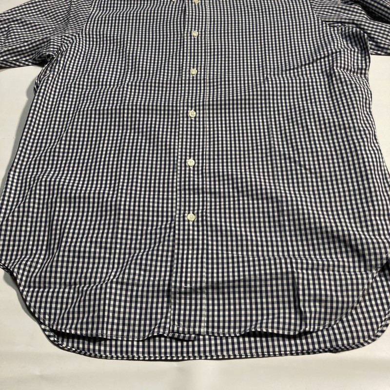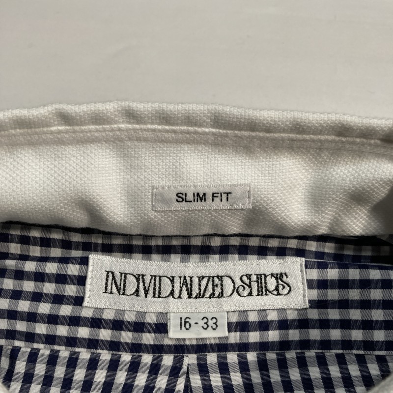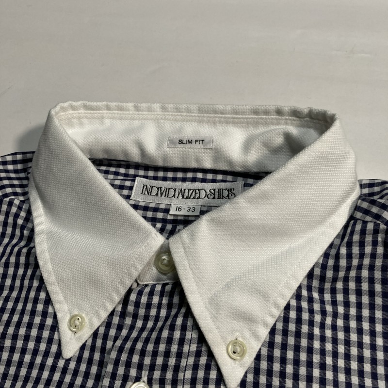 INDIVIDUALIZED SHIRTS★MADE IN USA★ギンガムチェック 長袖BDシャツ 襟切替クレリック風 紺 16-33 USA製 インディビジュアライズドシャツ 收藏