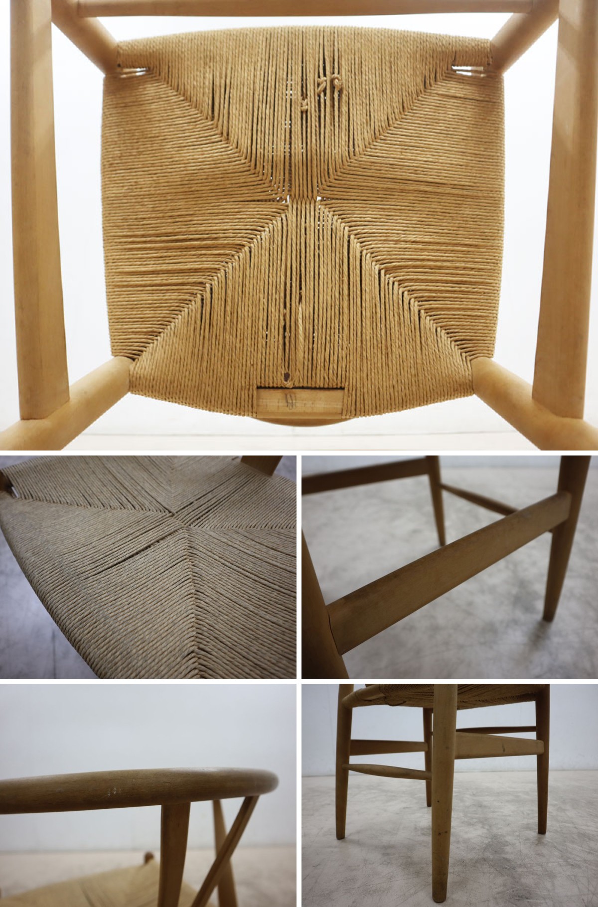 経年によるやけ、色ムラ、小傷、汚れ、カタつき、ペーパーコードに隙間が目立つ箇所はございます。また、メーカーロゴシールがはがれておりますが、味わい深い名作品のYチェアで素晴らしい商品です。ヴィンテージの風合いとしてお楽しみください。(画像にてご確認下さい。)