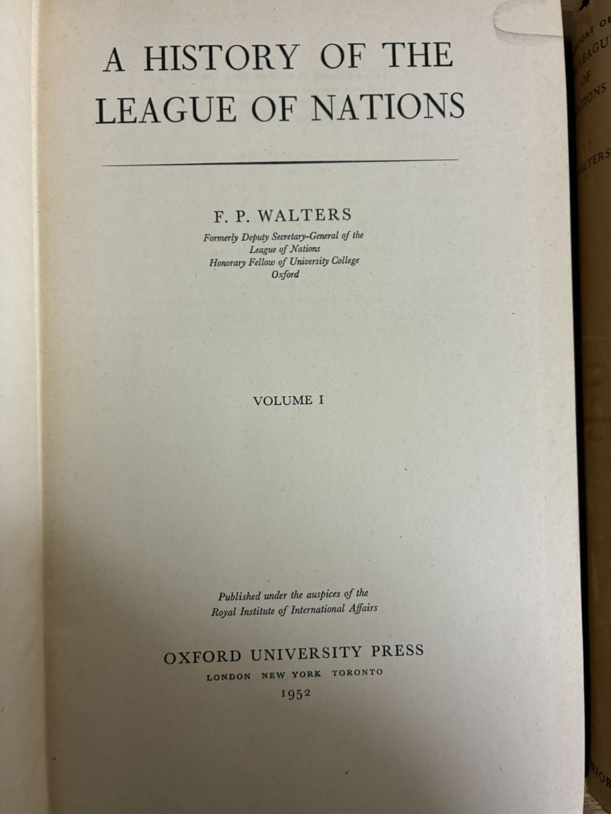 1952年 F.P. Walters 国際連盟史 2巻揃 League of Nations Oxford 洋書古書 收藏