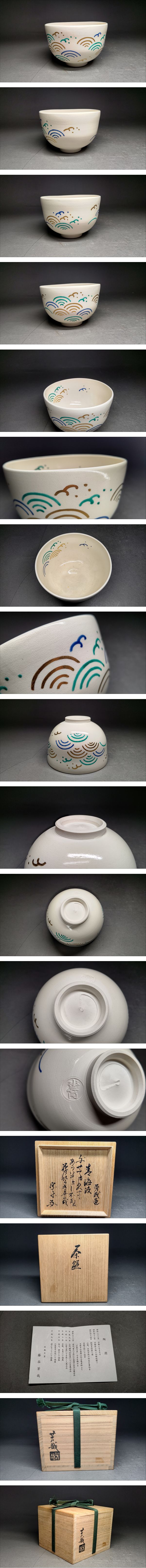 【茗】水無月窯 藤谷芳哉 作 青海波 絵 茶碗 速水流 速水 宗楽 箱書 共箱【大亀 香雲 永楽 真葛 香斎 遠州 流 蔦細道 水 道八 香山】 收藏