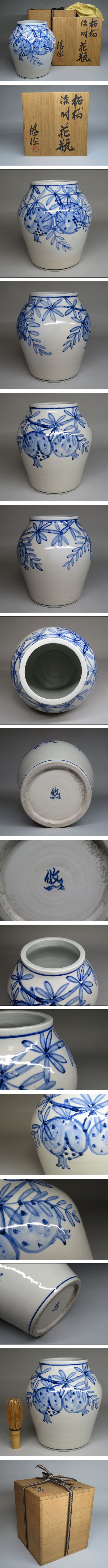 | 人間国宝「近藤悠三」作 染付柘榴花瓶 共箱 (師:富本憲吉) | ||