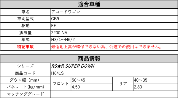 [RS-R_RS★R SUPER DOWN]CB9 アコードワゴン(2WD_2200 NA_H3/4~H6/2)用競技専用ダウンサス[H641S] 收藏