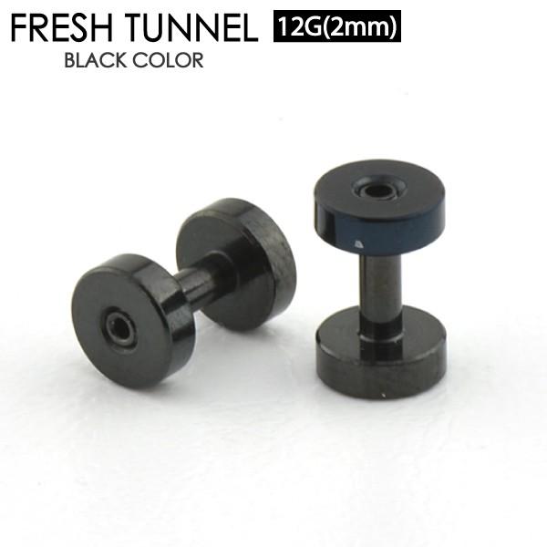 フレッシュ トンネル ブラック12G (2mm) BLACK アイレット サージカルステンレス316L カラーコーティング ボディピアス イヤーロブ 12ゲージ
