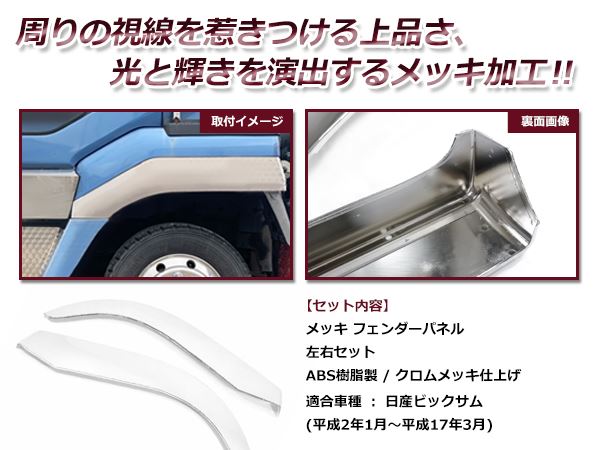 【大型商品】日産ディーゼル ビックサム 平成2年1月~平成17年3月 メッキ フェンダーパネル 左右セット メッキパネル 收藏