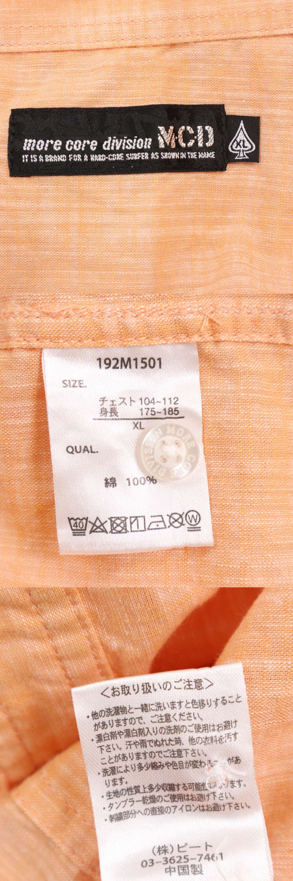 MCD more core division エムシーディー 春夏 ロゴ刺繍★ 半袖 ワーク シャツ Sz.XL メンズ 大きいサイズ 收藏