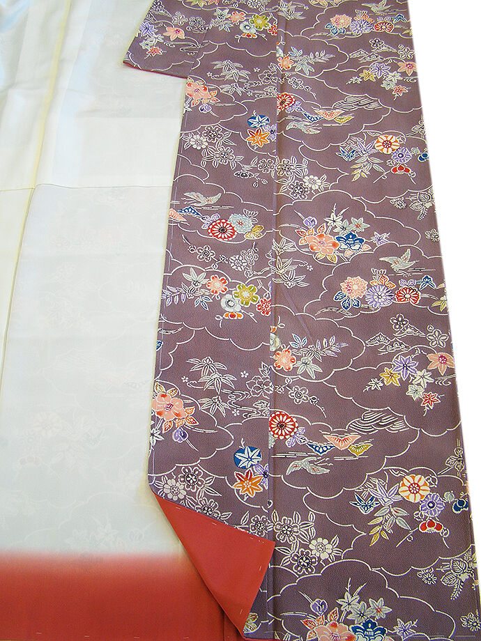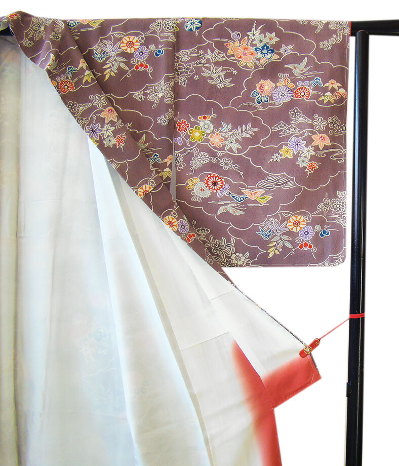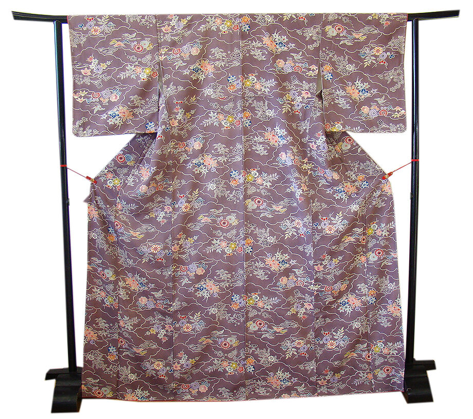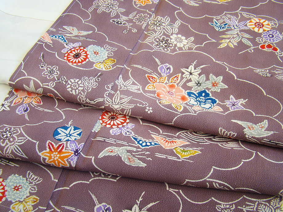 | 商品説明 | こちらのお品は「袷」でございますので、10月~5月までお召頂ければと思います。 しなやかなふっくらぽってりとした着心地良い重めのちりめん地の生地、 渋い葡萄鼠色地に藍、白、エンジ、紅梅、灰、橙色等の雲取り、花草柄の染柄、 八掛は長春色(正絹)、幅広い年代の方にお召頂けます。 |