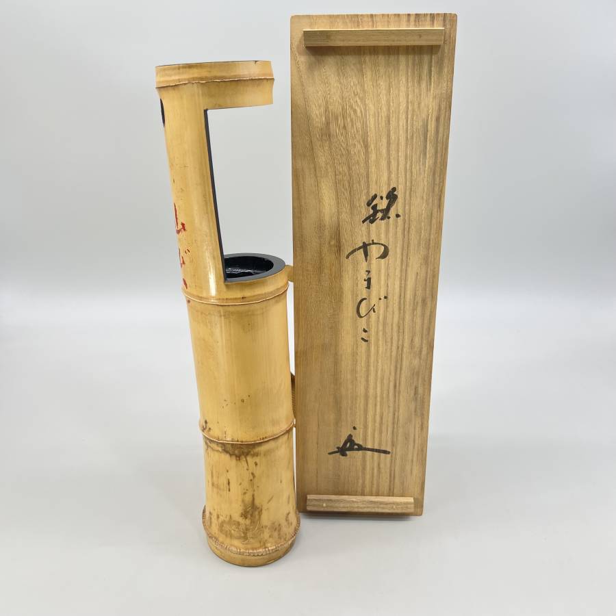 ●獅子口花入れ 指物師 萩井市岡 銘「やまびこ」一茶庵 花押 共箱です。