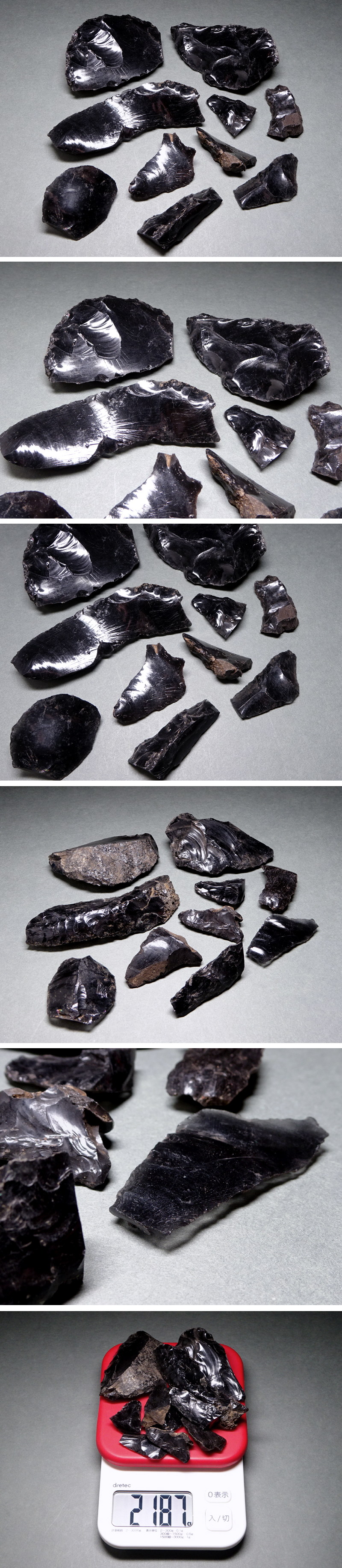 慶應◆古代文明の石器 黒曜石 石鏃 矢尻 矢の根 狩猟道具断片 残欠他 計10点 打製石器磨製石器発掘出土品⑭ 收藏